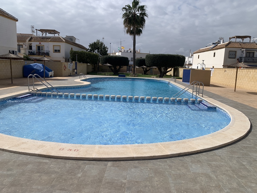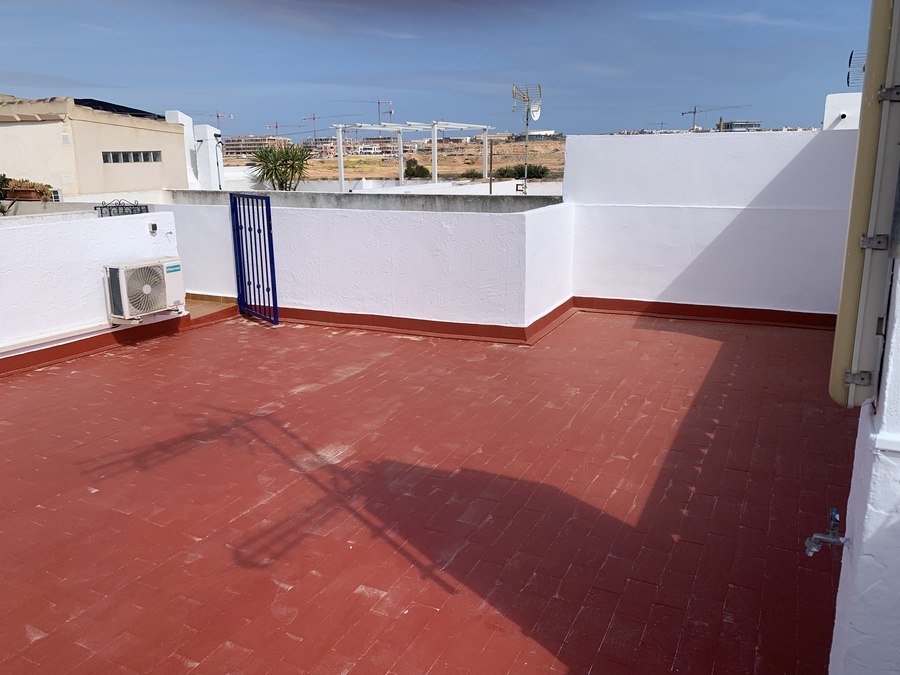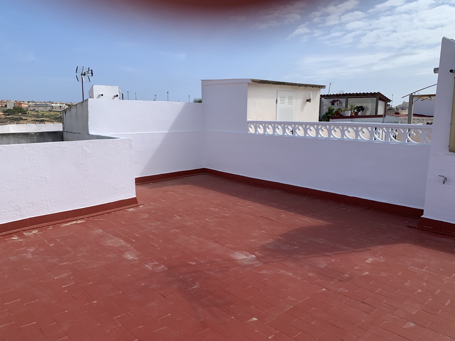 2 bedroom, 1 bathroom, top floor bungalow with front terrace but also with large private roof terrace in Jardin del Mar phase V. Beautiful Communal pool Close to all amenities.