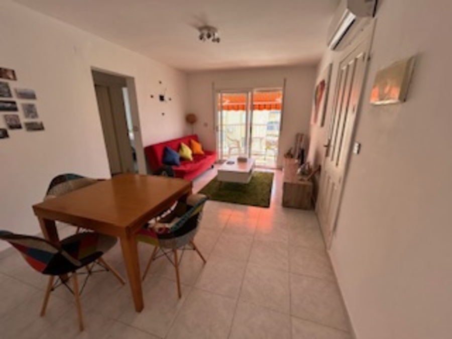 The living area is equipped with air conditioning, ensuring comfort throughout the warmer months. The property also benefits from access to a communal pool, perfect for relaxing or entertaining.
